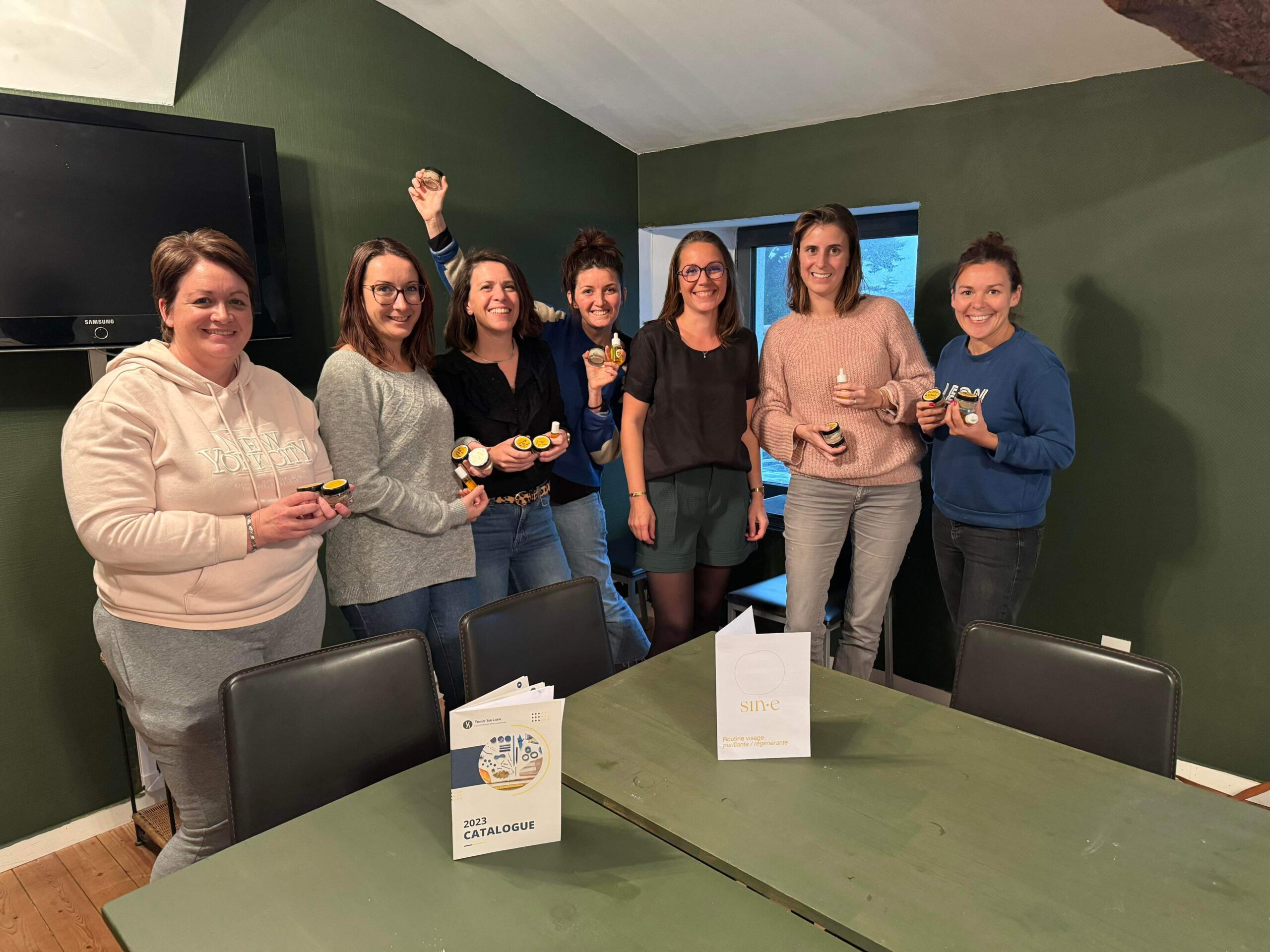 Pas peu fières de nos créations, nous immortalisons l’instant par une photo de groupe. Nous allons même jusqu’à prendre le verre de clôture pour faire durer le moment. Je vous fais grâce des photos avec nos masques posés sur nos minois 😉🙄.