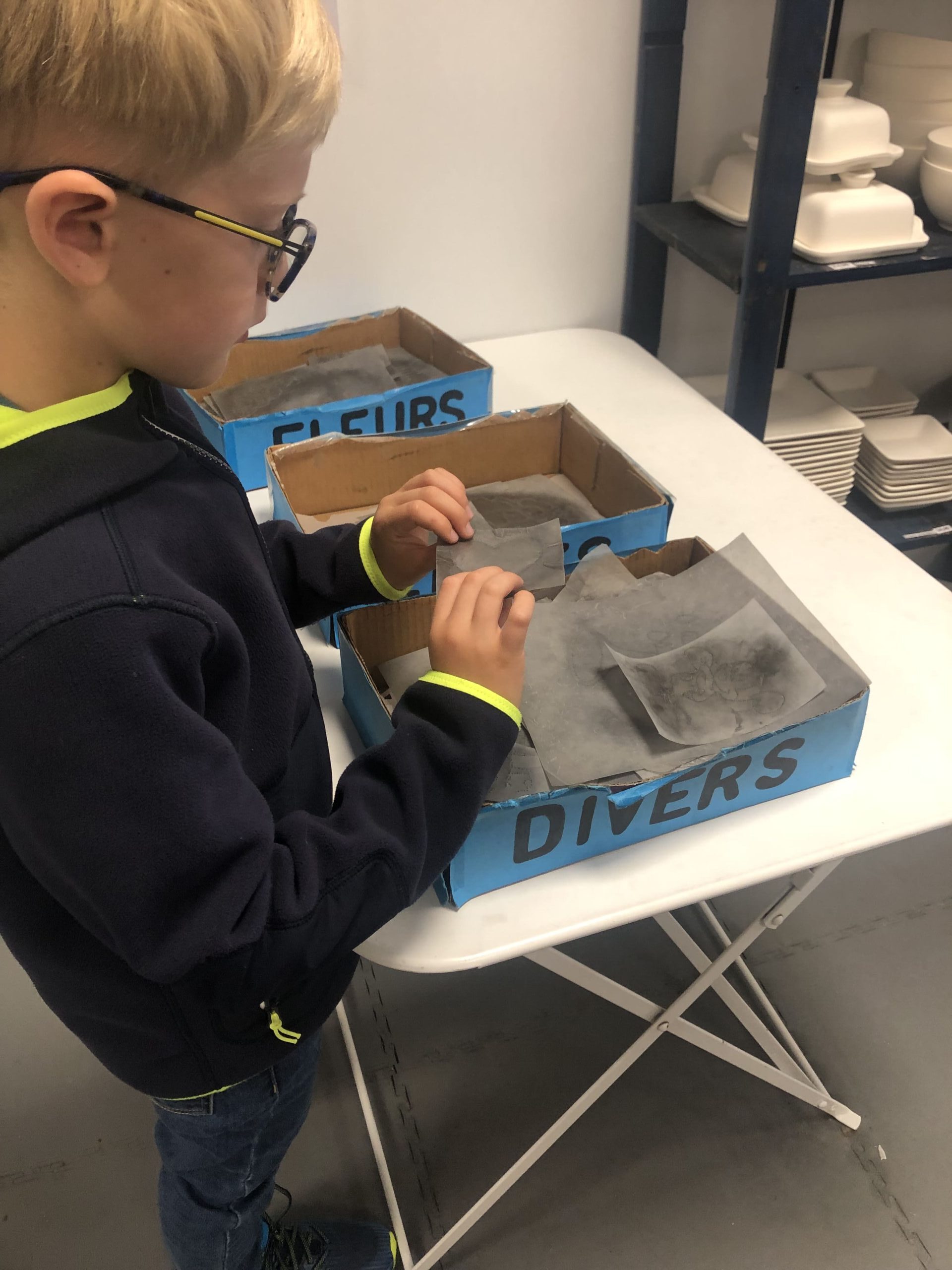 Il faisait un petit peu gris et je souhaitais un moment au calme, ensemble, pour réaliser une activité qui nous plairait à tous les deux. L’atelier de décoration de la d’1h30 a été retenu pour s’initier à la peinture sur faïence.