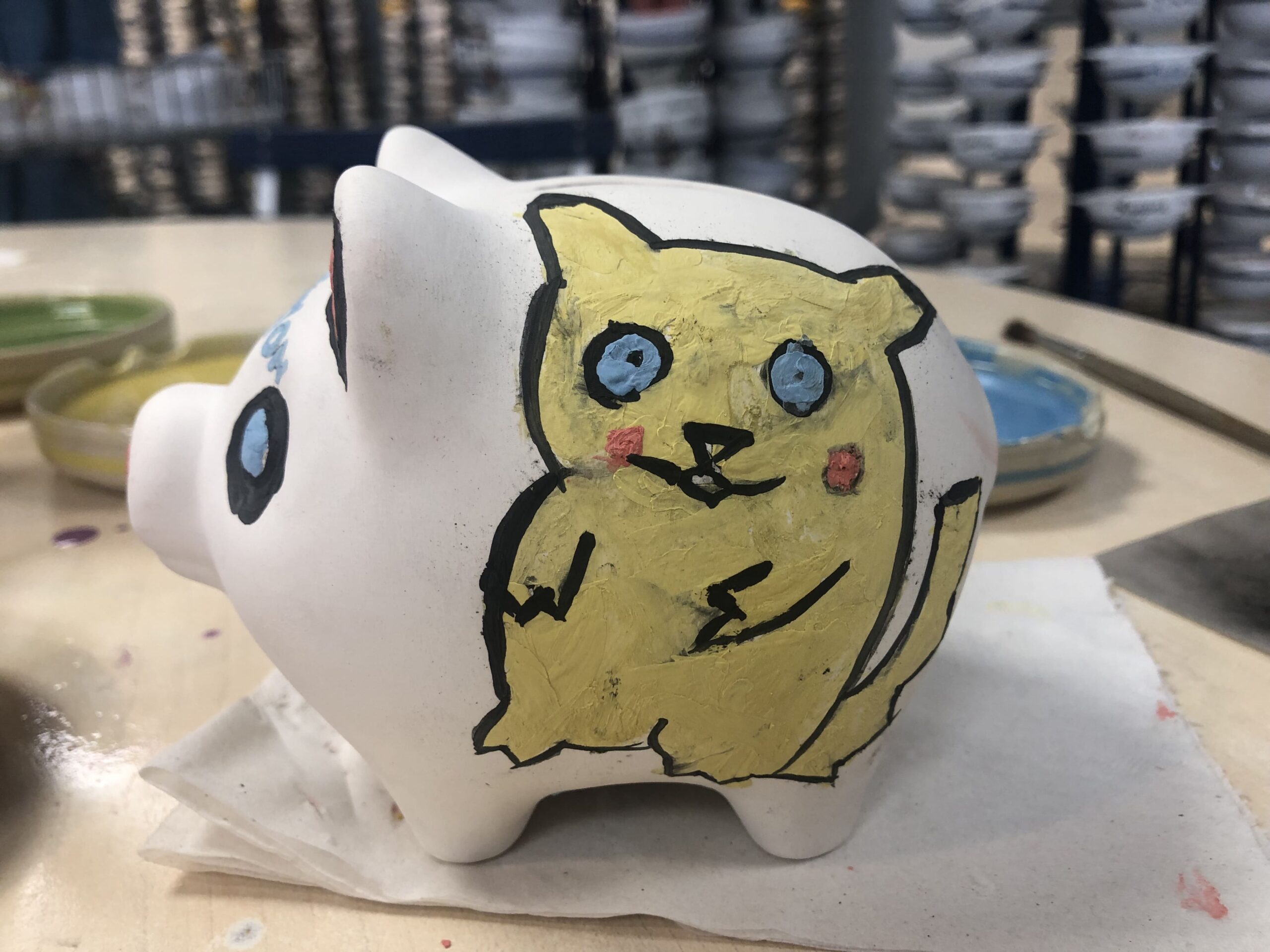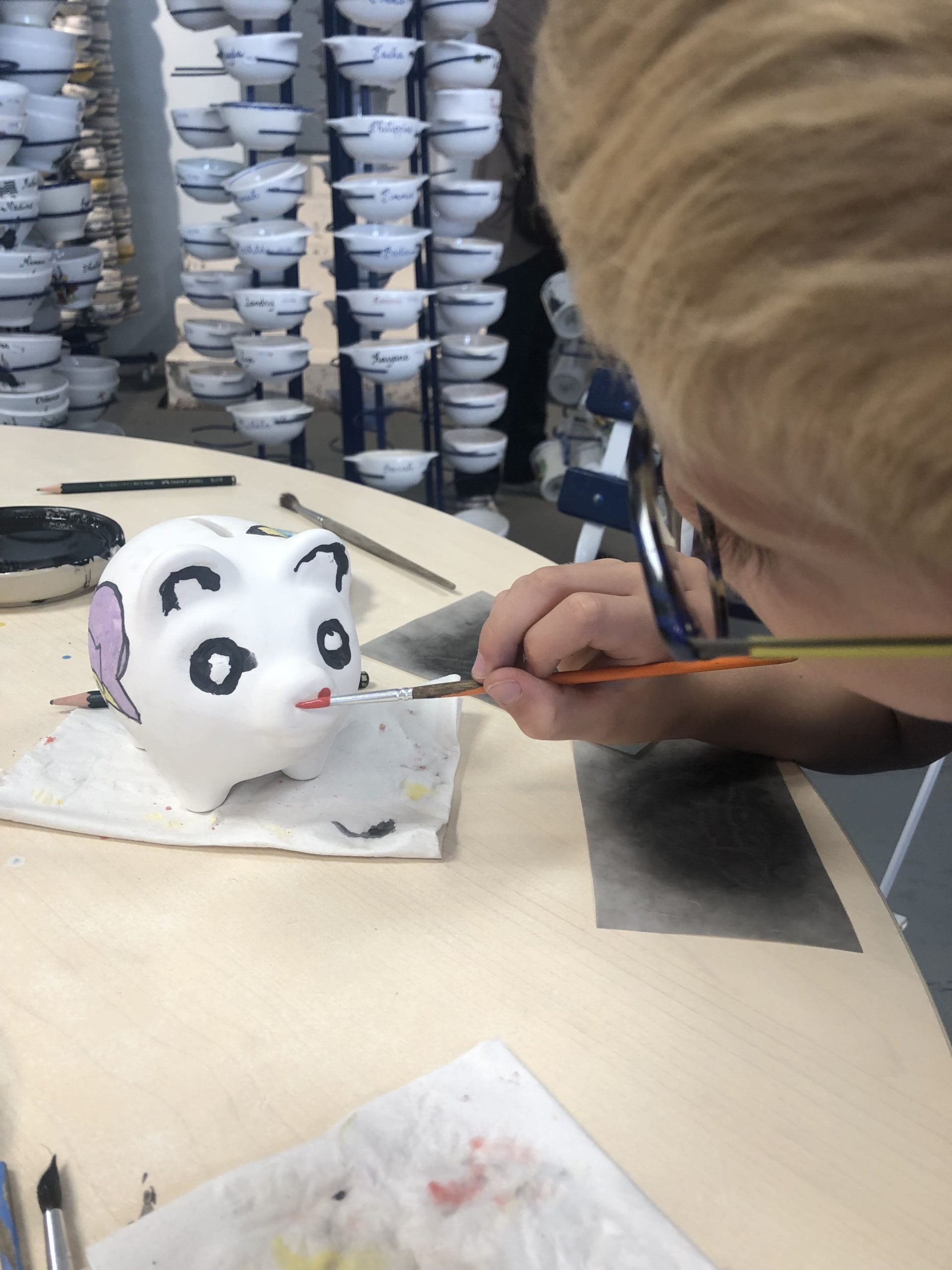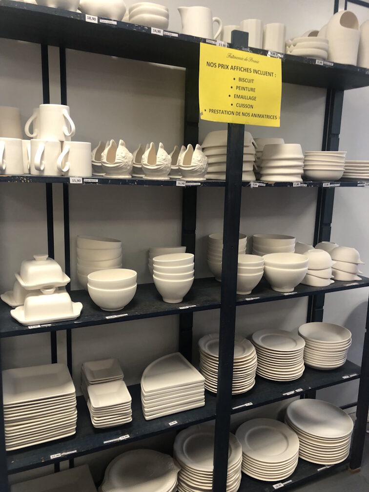 Il faut aller choisir un élément à peindre parmi les tirelires, des tasses, des bols, des assiettes…